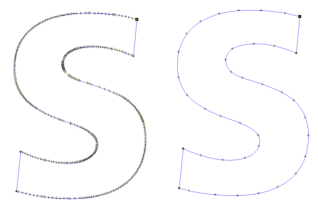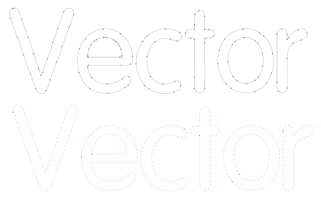 Optimize VectorsThe third and final data clean up option is Optimize Vectors. This will convert the artwork to lines and arcs, while minimizing the number of vectors. Multiple arcs will be converted to a single arc and extra points on a line will be deleted. Optimize Vectors is similar to Recreate with Bezier Curves, but with arcs and lines only. If additional vector editing is needed, and you prefer to work with arcs and lines, then this is the right tool to use.