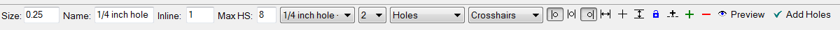 Click on this icon when you are finished and you want to add the holes to the layout. The holes will not be added until you clik this. This tool operates in a Preview mode until you're finished. If you click out of the tool before you click on Add Holes, the holes will be lost.