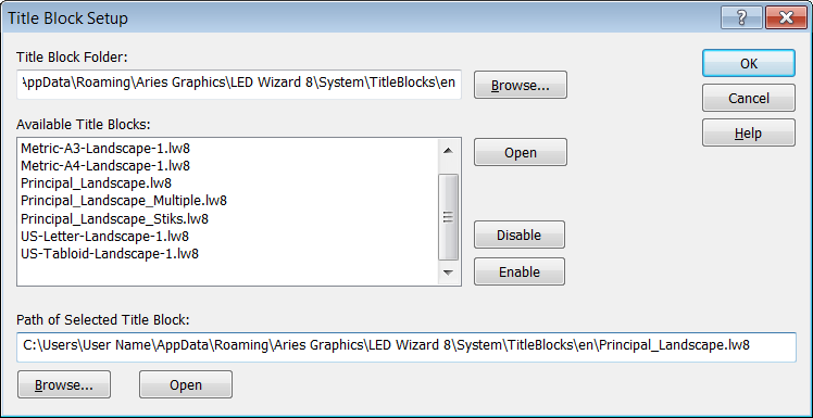 Specify where the title blocks are stored. The default is now in the AppData folder as shown.