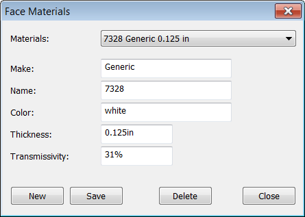 The materials will be listed with the Name, Make, and Thickness fields.