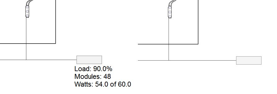 The data boxes normally show the Load Percentage, Number of Modules, Watts, and the Power Supply Name. This data can be changed in the Power Supply Template Setup.