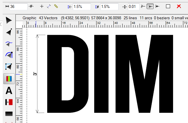 The Dimension feature lets you enter dimensions quickly and accurately. To activate the Dimension feature, click on Dimensions in the Tools Menu or on the Dimension Tool (shown above).