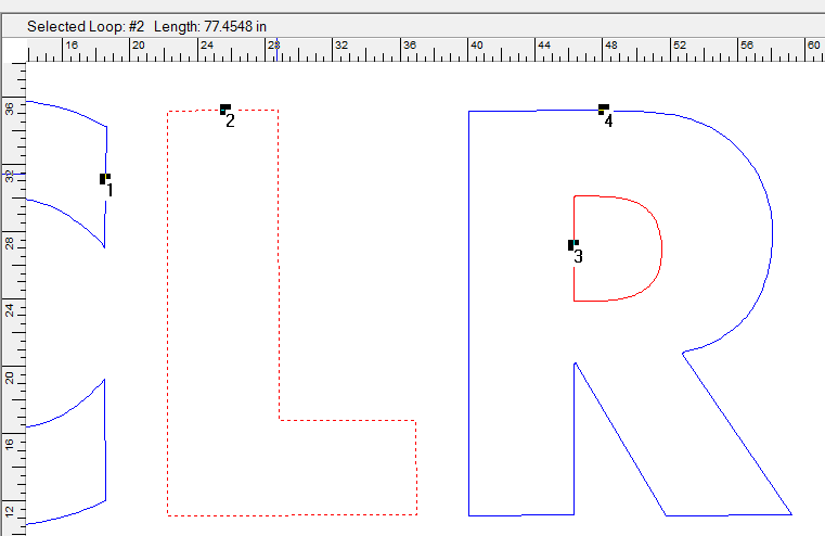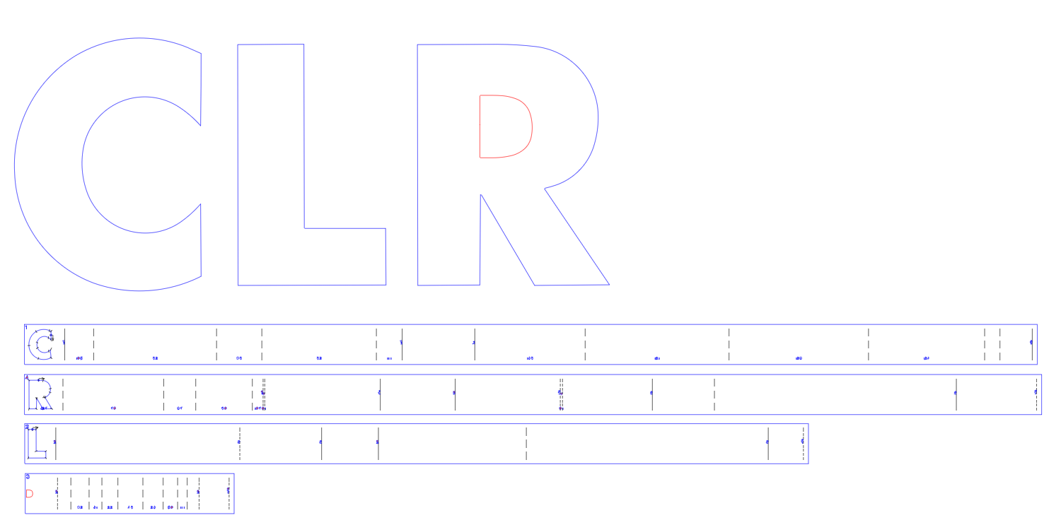 Each section (rectangle) in the CLR plot represents a "closed loop" that makes up each return. The number in the upper left corner of each section is the number of that loop, where the numbering starts with the first character on the left. If a character has one or more internal loops, the internal loops are numbered before the outer loop. For example, if the copy reads CHANNEL LETTER RETURNS, the internal loop in the A would be numbered loop 3 and the outer loop for the A would be loop 4.