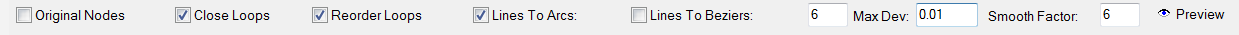 Check this when the graphic contains all lines. It will attempt to create arcs where possible. The number to the right is the tolerance, ranging from 1 to 30. You will see the effect of each setting when you press the Preview button.