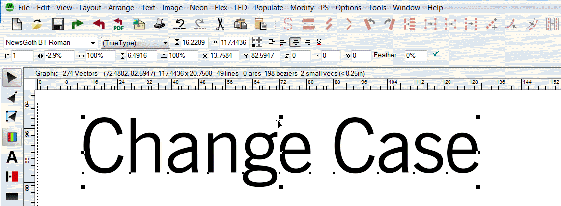 Note that this will not work with text that has been imported from another program. The original text has to be entered with the LED Wizard Text Tool.